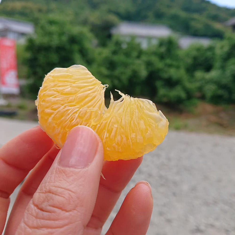 1月に収穫した甘夏柑をひとつひとつビニール袋に入れて、冷蔵庫でゆっくりゆっくり長期間熟成させました。そのため、初夏の5月・6月にちょうど優しく熟成された美味しさを味わえます🍊