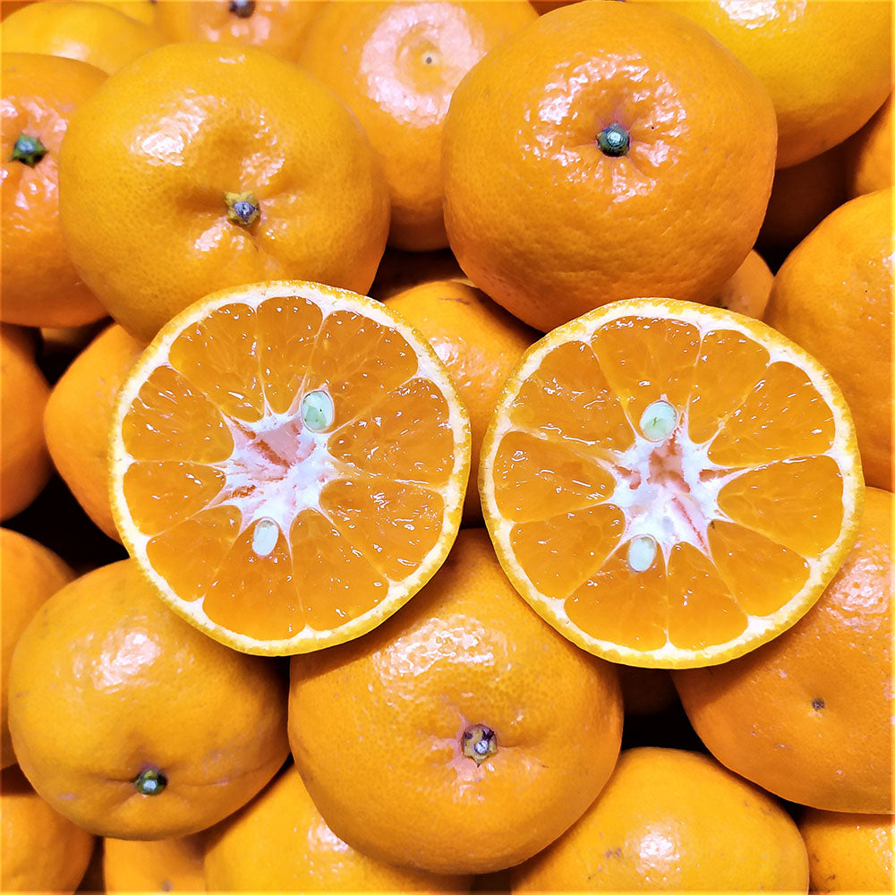清見の濃厚な甘さと、ポンカンのさわやかな香りを併せ持ち、大粒のぷりぷりした食感が口の中ではじけます。