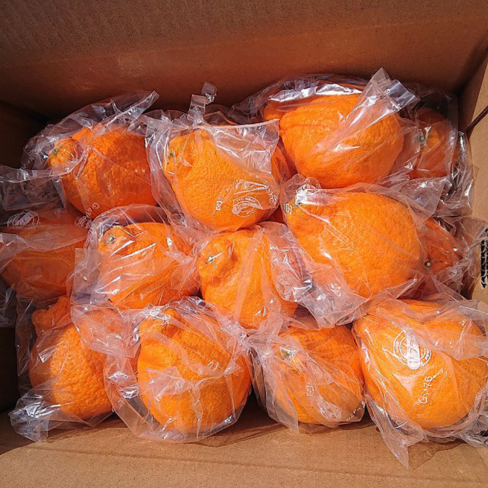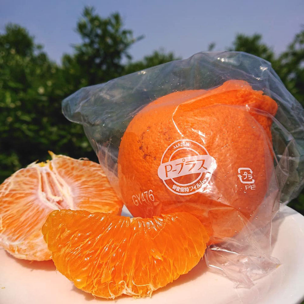 ハウスで栽培した不知火を2月に収穫し、乾燥を防ぎ鮮度を保つ特殊な保存袋「ピープラス」に一つ一つ包装。その後、低温で熟成させました。