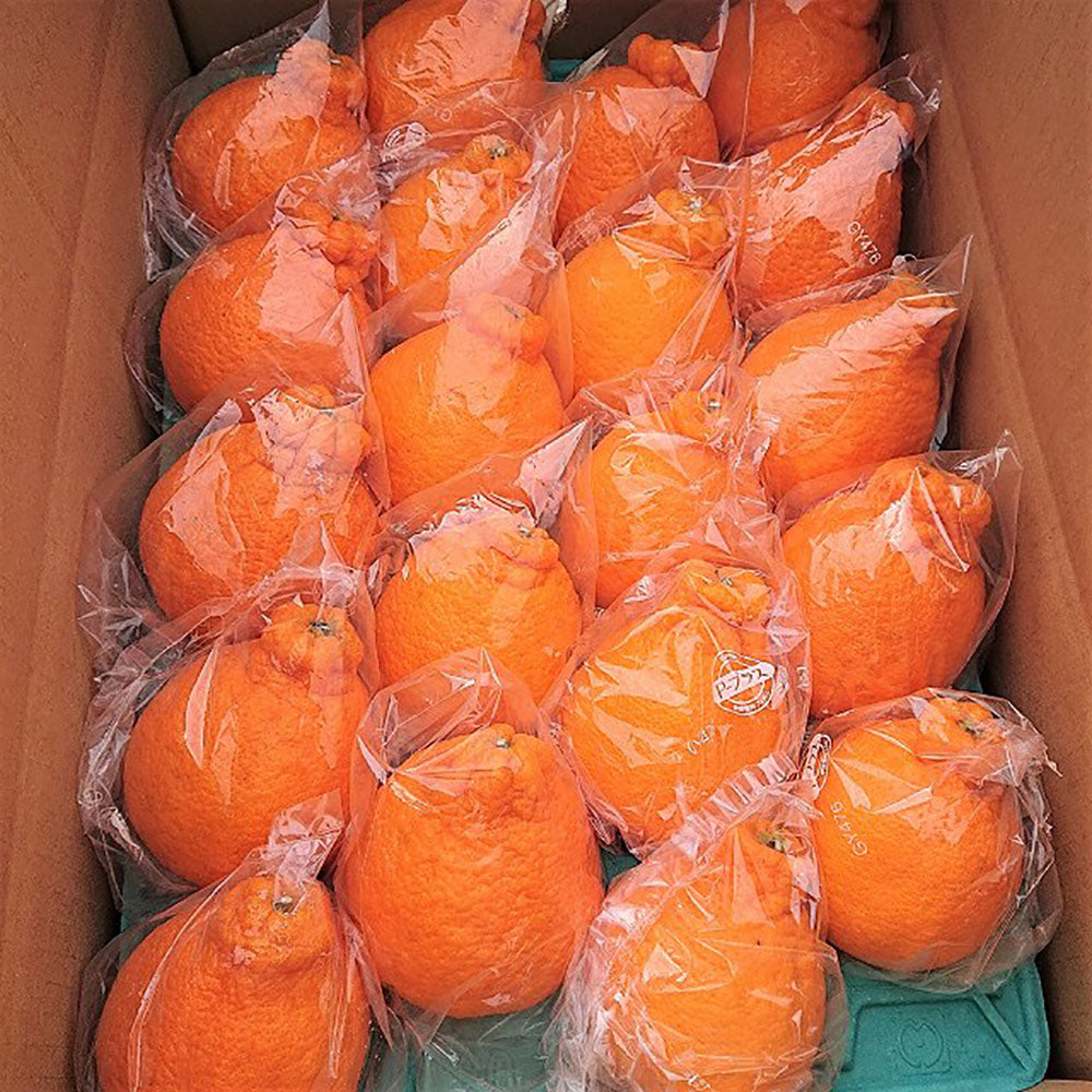 ハウスで栽培した不知火を2月に収穫し、乾燥を防ぎ鮮度を保つ特殊な保存袋「ピープラス」に一つ一つ包装。その後、低温で熟成させました。