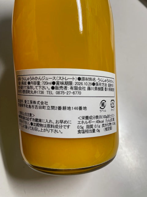 ゆら温州みかんの無添加100%ストレートジュースです。
